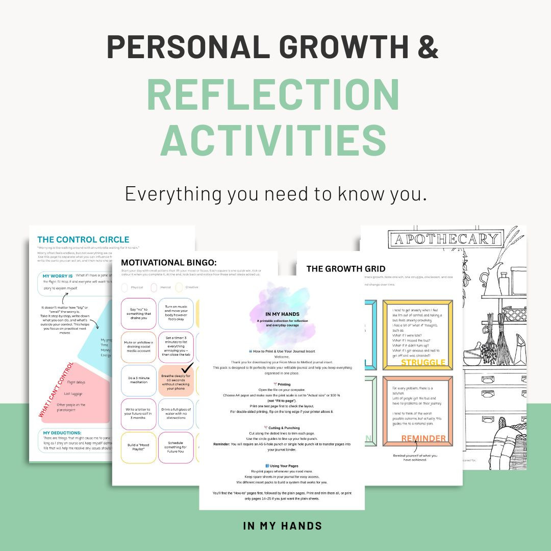The Discovery Journal is especially helpful for this kind of reflection. Its prompts and solid structure help you explore what is happening beneath the surface without needing to know the answers upfront. It acts as a container where anxiety can be expressed and explored safely, rather than swirling endlessly in your mind.