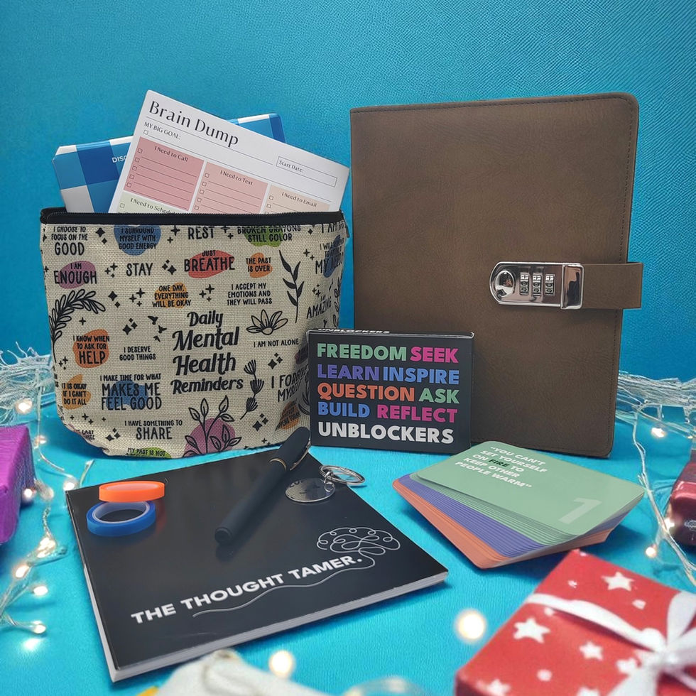 You’ll also get a Mental Health Bag, a pen, two highlighter tapes, and a semi-colon keyring to remind you you’ve still got chapters to write. It’s limited, it’s loaded, and it’s the ultimate Christmas treat.